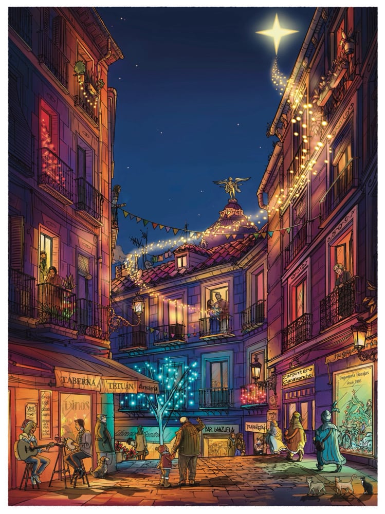 En el cartel de la Navidad de 2023 de Madrid, con el lema “Madrid, una ciudad con Estrella”, represento las cosas que para mí componen la esencia de Madrid.